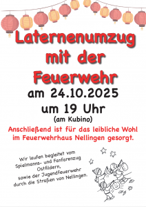 Am 24.10.25, lädt die Feuerwehr Ostfildern Abt. Nellingen zum gemeinsamen Laternenlauf ein.